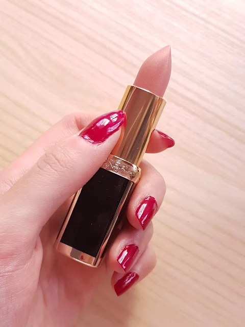 Let's begin first with the packaging. It looks really luxurious on the eye, but when you actually get to touch it and feel it, it is kind of plastic-y and cheap looking. I was hoping it would be I mean I knew it's an affordable drugstore product but still I had higher expectations. On the front, you get the L’Oréal logo, and on the side you get the Balmain logo in beautiful gold letters. What’s interesting about this product is that L’Oréal invested in completely new machines to fabricate these lipsticks. When you turn them out, the L’Oréal logo is always in the front and the lipstick doesn’t twist when you pull it out. That way, no matter how you’re applying the lipstick, the logo is always visible.